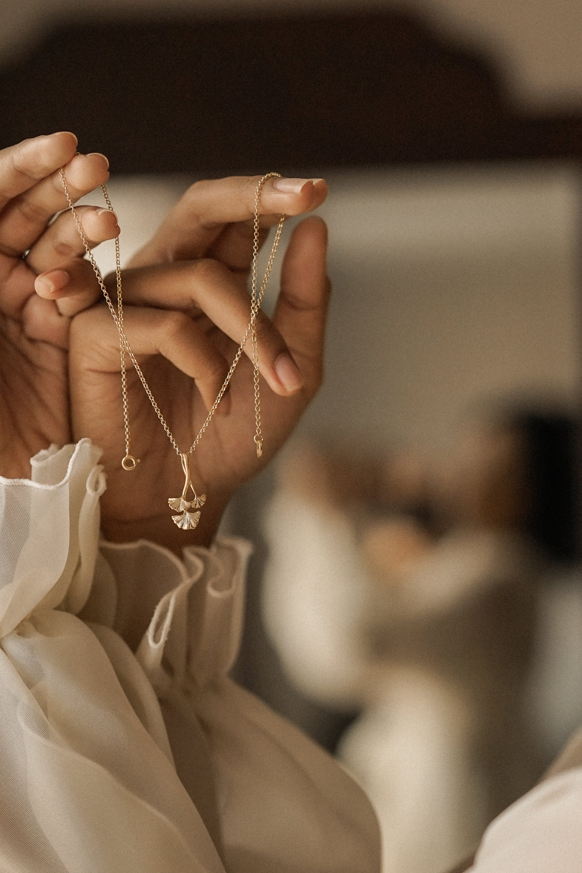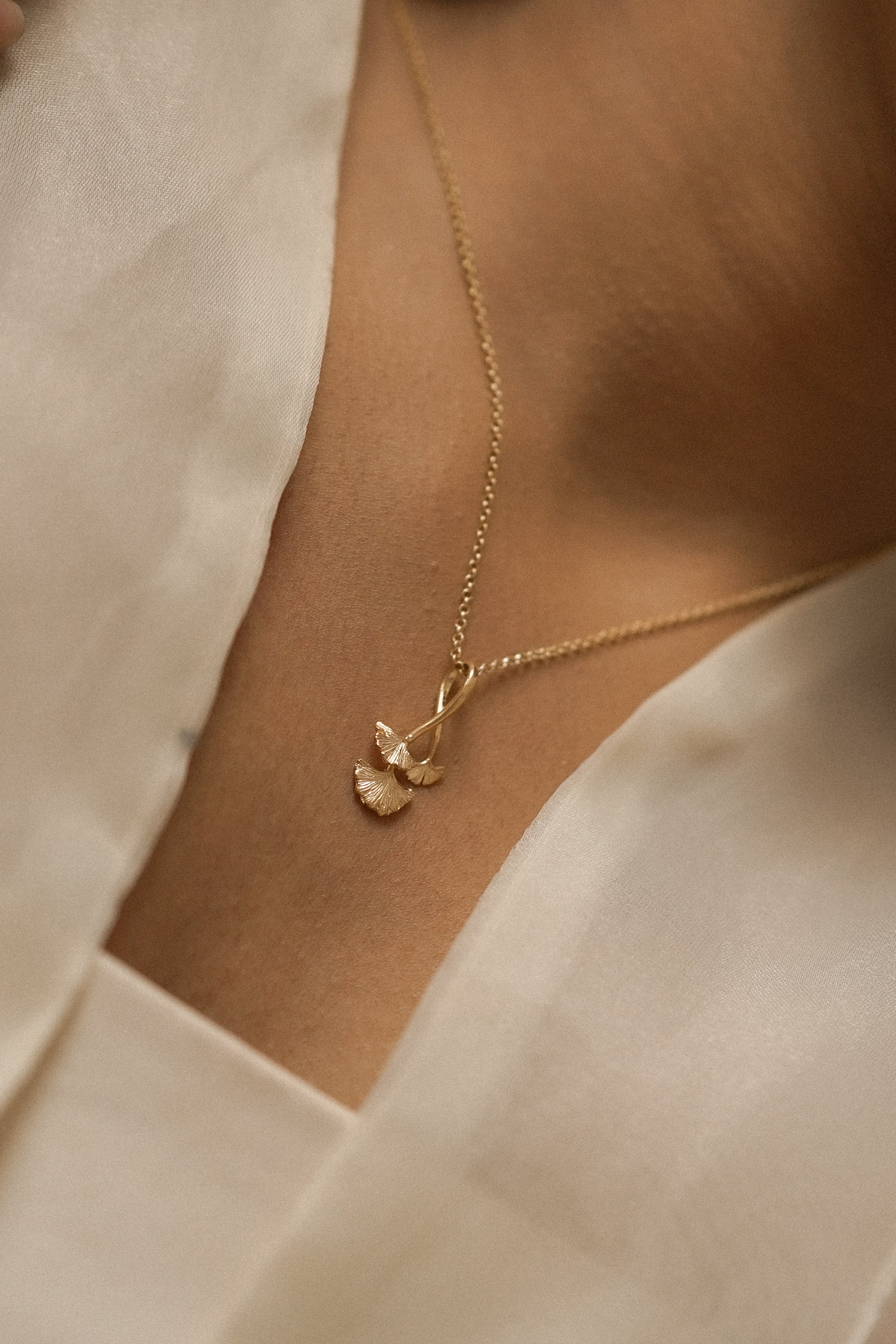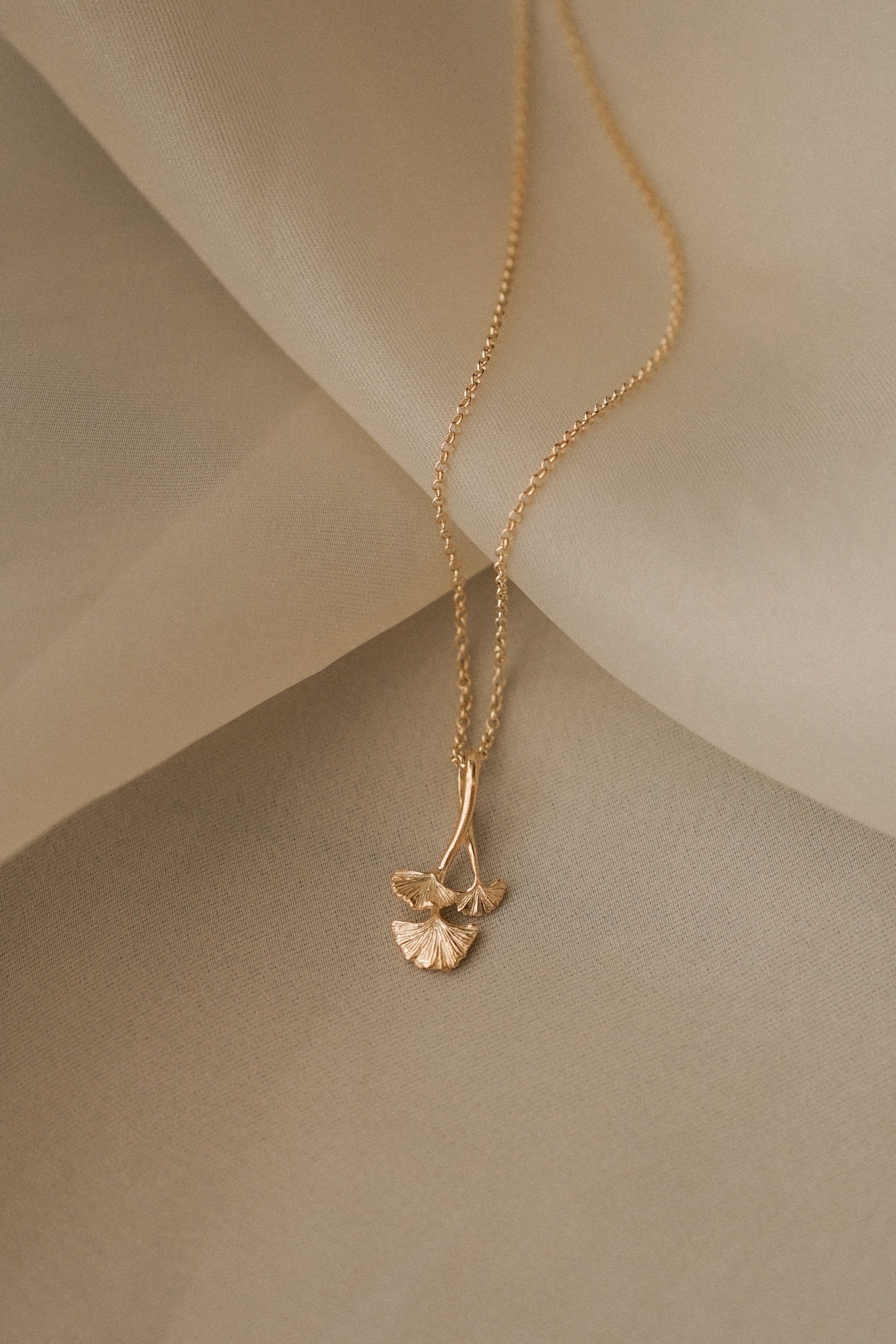 Ginkgo Pendant with Chain Gold