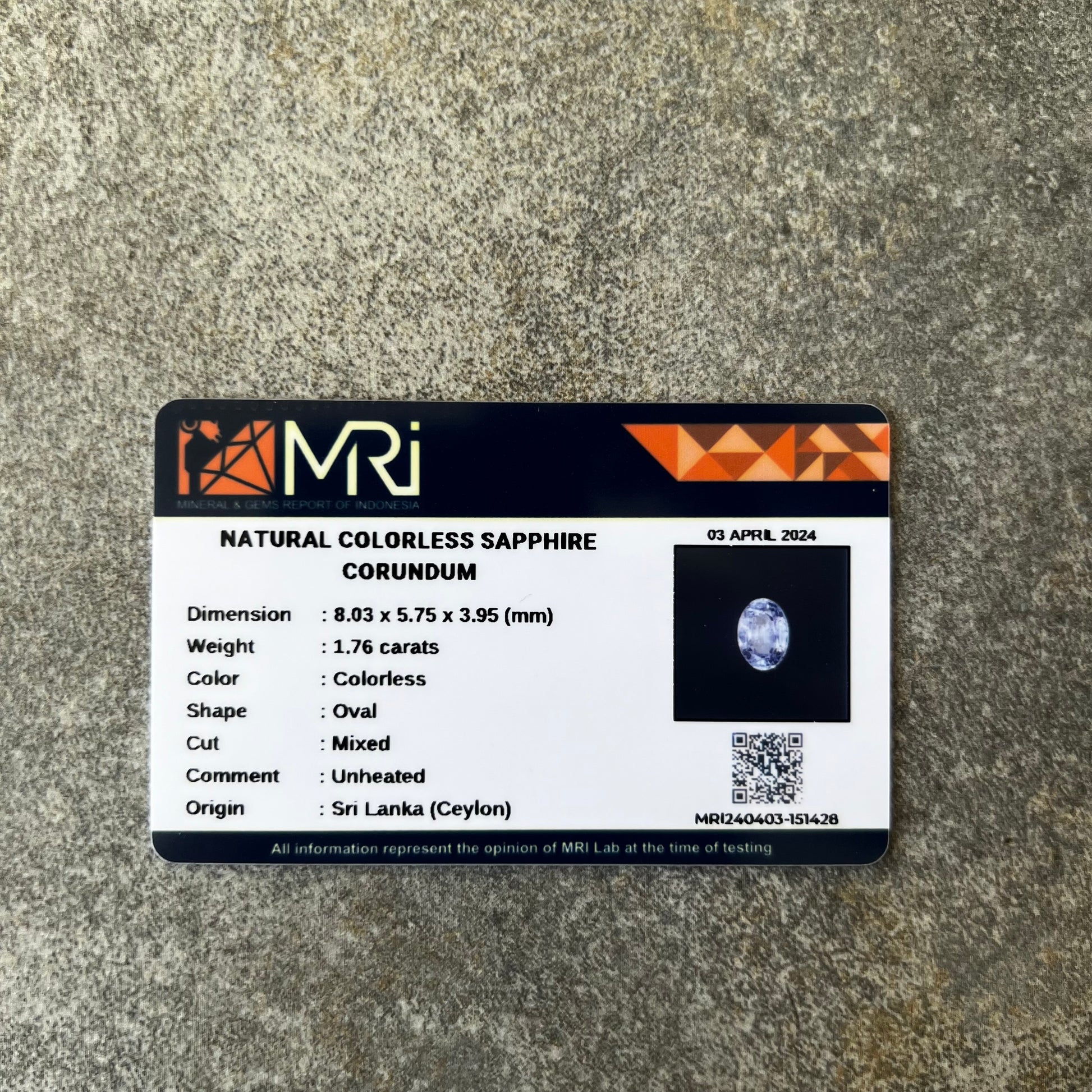 Unheated Natural Colorless Sapphire - 1.76 carat