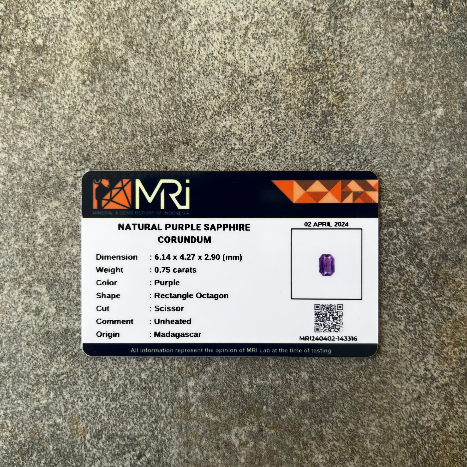 Unheated Natural Purple Sapphire - 0.75 carat