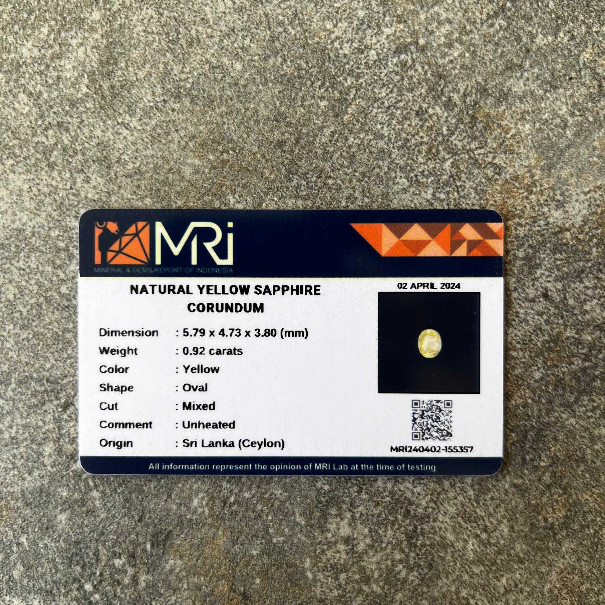 Unheated Natural Yellow Sapphire - 0.92 carat
