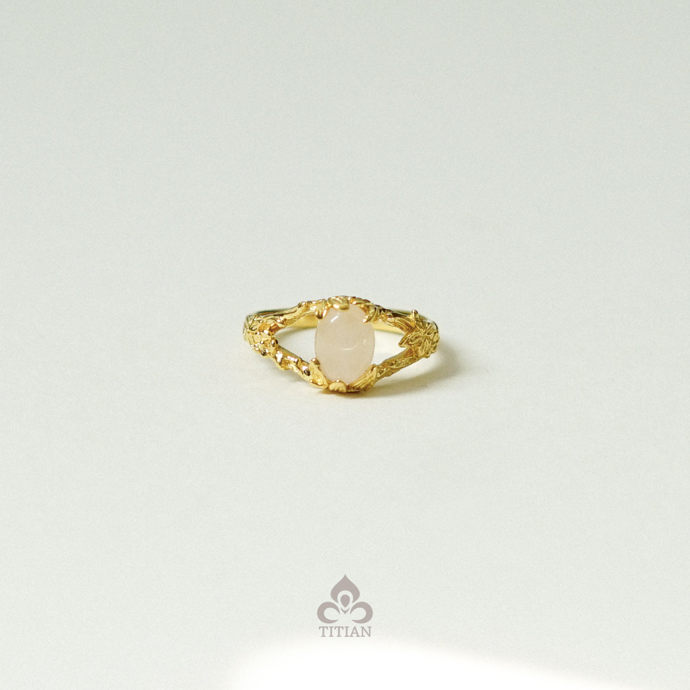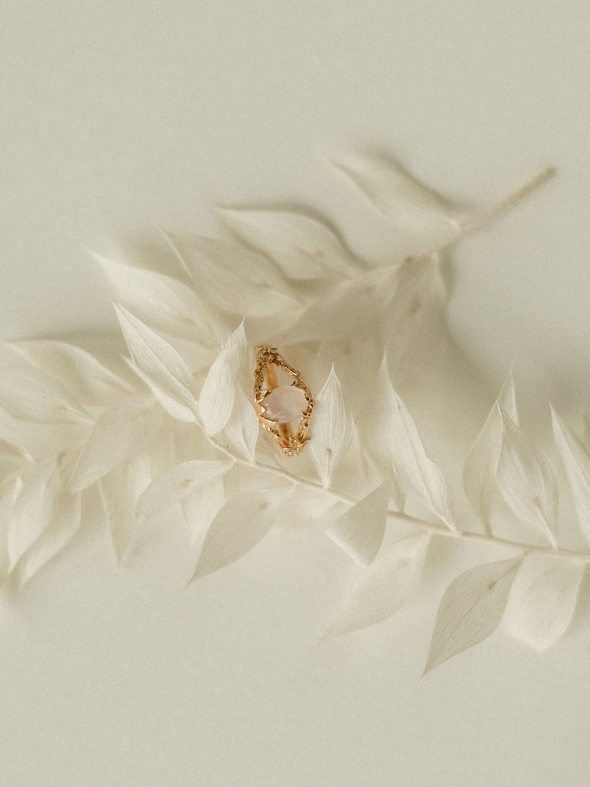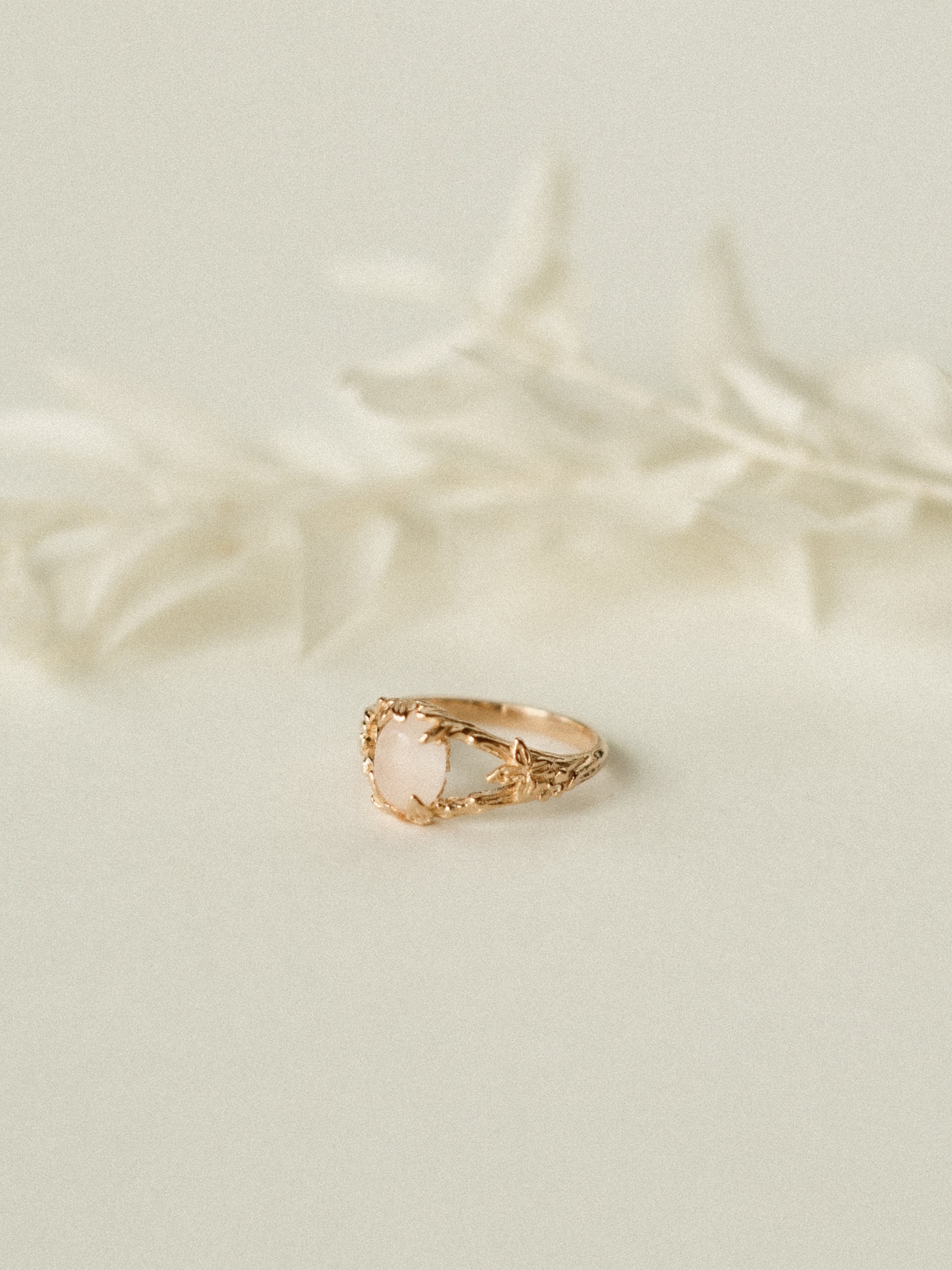 With this ring, you'll carry the magic of your garden wherever you go. The delicate flower engravings and the soft glow of rose quartz embody the essence of nature's beauty, reminding you of the peace and tranquility that surrounds you.
